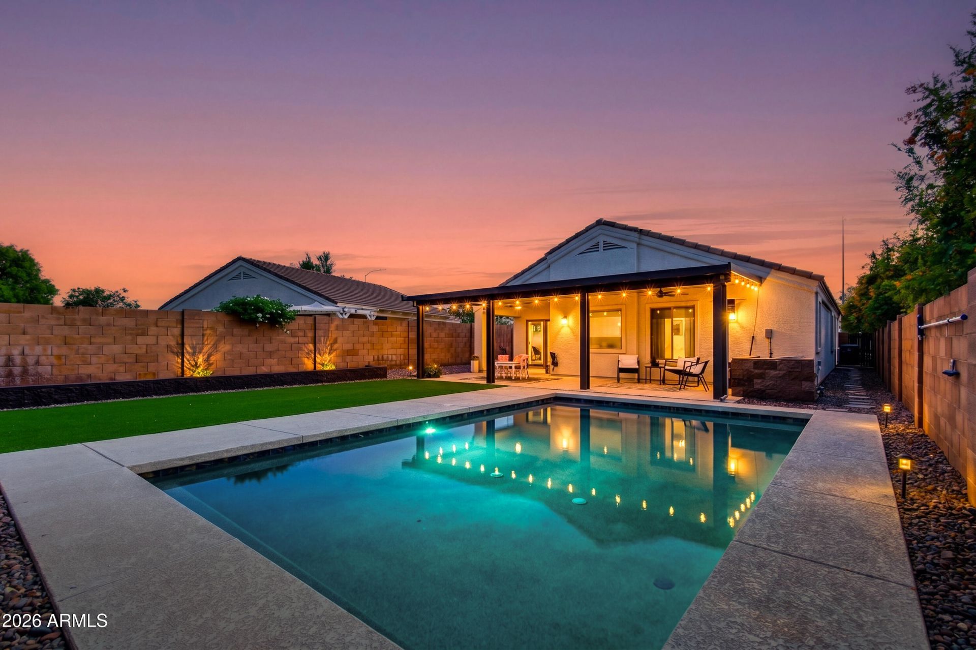 Move-in ready 3 bed, 2 bath home just under 1,700 sq ft with major upgrades throughout, including a new HVAC unit (2025), new hot water tank, refreshed kitchen, updated bathrooms, and fresh exterior paint. The spacious owners suite features a large walk-in closet, dual sinks, separate shower, and soaking tub.Step outside to a true backyard retreat featuring a stunning sparkling pool, expansive covered patio, stylish pergola lighting, and open desert behind for added privacy. Whether youre hosting friends, enjoying quiet evenings, or taking in the mountain sunset views, this outdoor space is designed to impress.Located near neighborhood parks, hiking trails, the Salt River, Usery Mountain Regional Park, and Lost Dutchman State Park