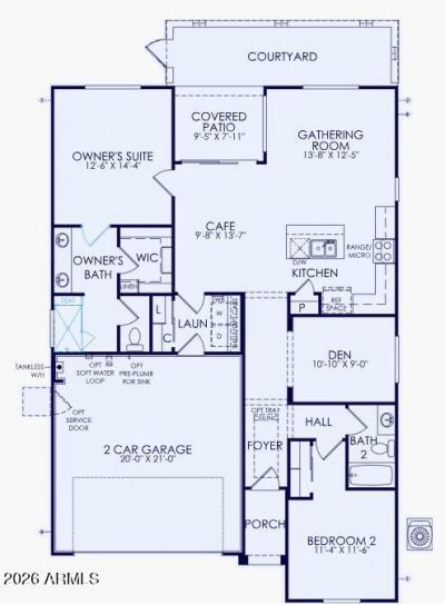 Up to 3% of base price or total purchase price, whichever is less, is available through preferred lender to be used toward closing costs, pre-paids, rate buy downs, &/or price adjustments.Brand new Skyline Series Bayley plan featuring a rear patio with paver courtyard. Landscaping and landscape maintenance included. Two bedrooms, two bathrooms, plus a den. Driveway and walkway pavers, 8-foot doors, 10-foot ceilings, and owners bath with low-threshold shower and seat. Refrigerator, washer and dryer, and window blinds included. Upgraded flooring, cabinets, countertops, and stainless steel appliances. Chef-style kitchen layout with 36-inch gas cooktop, wall oven, and microwave. Estimated July completion.