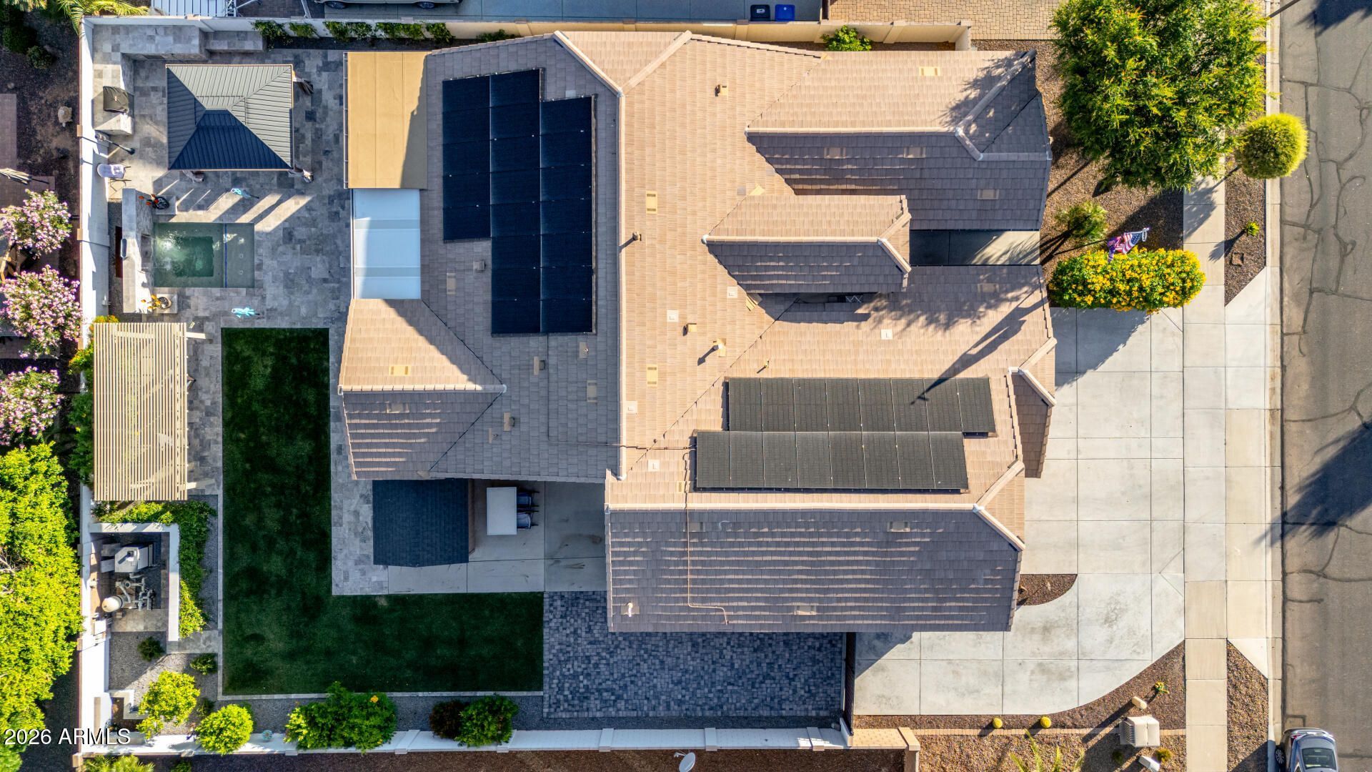 This single-story 2,304 sq ft home located in the Asante community features 3 bedrooms, 2 bathrooms, plus a versatile den/home office, perfect for todays remote work lifestyle. The open-concept floor plan showcases tall ceilings, abundant natural light, plantation shutters, and modern tile flooring, creating a bright and inviting space ideal for entertaining.At the heart of the home is a chef-inspired kitchen with granite countertops, white shaker cabinetry, subway tile backsplash, gas range, pantry, and a large center island with breakfast bar--perfect for buyers searching for an open kitchen, modern finishes, and entertaining space.Car enthusiasts and outdoor enthusiasts will love the rare 3-car tandem garage plus over height RV garage, complete with four post vehicle lift, climate control and extended driveway--ideal for RV parking, boat storage, off-road vehicles, or workshop space.Step outside to your resort-style backyard featuring travertine patio, built-in BBQ, pergola, fire pit, outdoor fireplace, and a fully automated heated spool with water feature and lighting--designed for year-round Arizona outdoor living and entertaining.Located in Surprise AZ, real estates fastest-growing corridor, this home offers easy access to shopping, dining, and major employers. If youre searching for a move-in ready home with RV garage, luxury backyard, and modern upgrades all near TSMC, this property stands out.