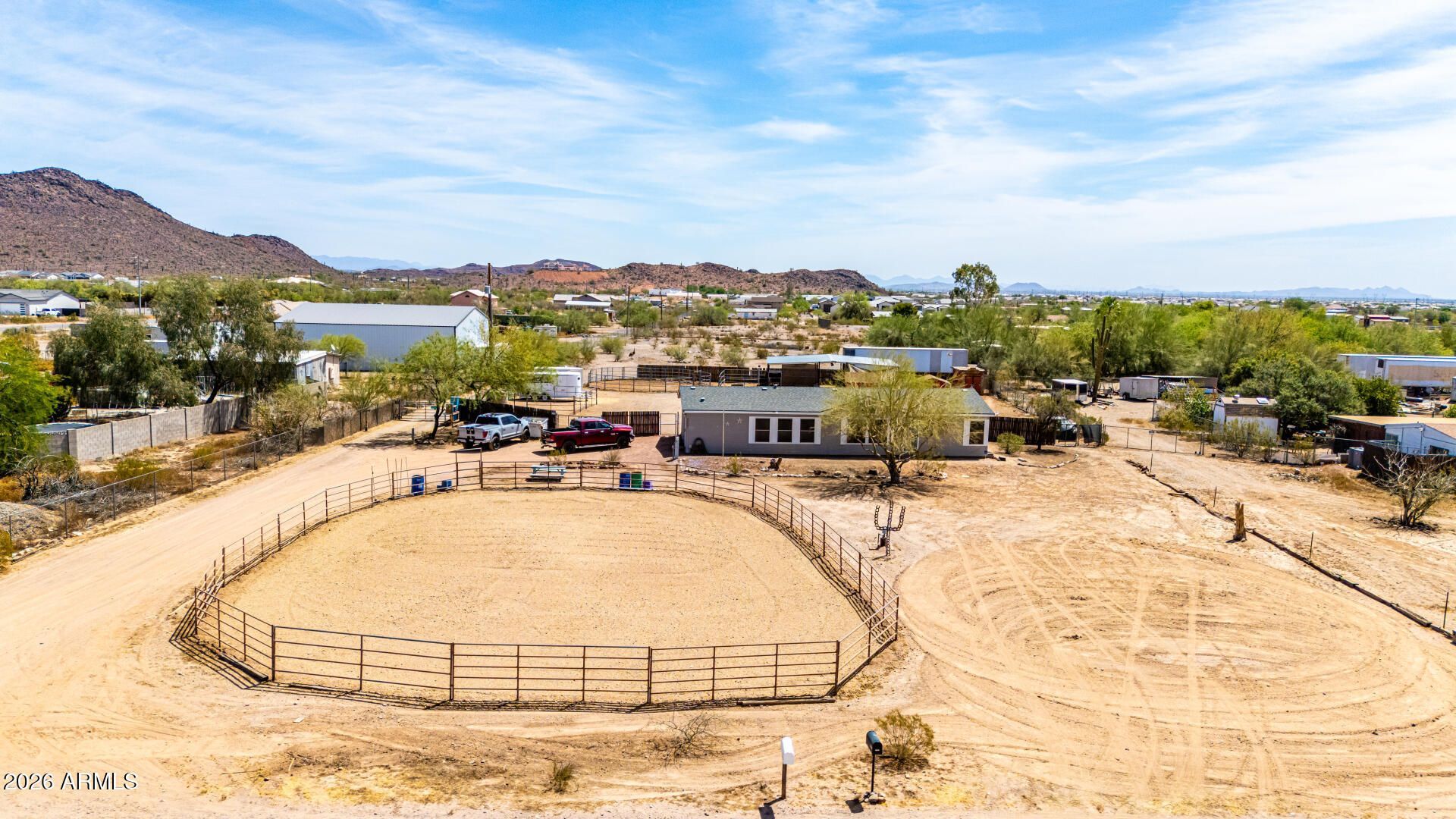 AMAZING HORSE PROPERTY SITUATED ON OVER 1.43 ACRES*STUNNING SPLIT FLOORPLAN 3 BEDROOM, 2 BATH HOME LOADED WITH UPGRADES*GREAT ROOM*KITCHEN WITH ISLAND*BREAKFAST NOOK*LARGE MASTER SUITE WITH WALK-IN CLOSET*MASTER BATH WITH DUAL VANITIES, NEW SHOWER, & ROMAN TUB*LUXURY VINYL FLOORING*UPGRADED FIXTURES THROUGHOUT*2-INCH WOOD BLINDS*VAULTED CEILINGS*LAUNDRY ROOM*NEW FLOORING*NEW ROOF*THE MOST AMAZING HORSE SETUP INCLUDES: HORSE ARENA, ROUND PEN, SIDE PEN, HAY SHED, TACK SHED, TIE POST, AND FEATURING AN OVER 1400 SQFT FOUR STALL MARE HOTEL*PROPERTY HAS ITS OWN PRIVATE WELL & NEW 1000 GALLON TANK*COUNTRY LIVING THAT IS STILL CLOSE TO LOOP 303, SHOPPING, & DINING*THIS IS A RARE OPPORTUNITY TO OWN A BEAUTIFUL HORSE PROPERTY WITH THE PERFECT SETUP!!