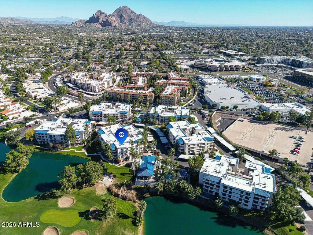 DIRECT LAKE/GOLF/MOUNTAIN VIEWS! LOCATION*LOCATION*LOCATION! FURNISHED (Except items listed in private remarks) ON THE LAKE! Absolutely Stunning Views of AZ Biltmore 3rd HOLE of GOLF Course, Lake and Spectacular Mountain Range On the 3rd Flr! Living the Dream of the Biltmore Lifestyle w One of A Kind Views and Sunsets in Prime AZ Location! 2 Bedroom 1 Bathroom Condo Has Unobstruted Views of from Primary Bedroom, Living Room and Patio. Open and Bright w Full Length Windows! Enter Directly Into Kitchen Area Featuring Plantation Shutters, Couffered Ceiing and Walnut Cabinetry w Granite Counters and Backsplash and Recessed Sink w Upgraded Pullout Chrome Faucet, Undermounted Cabinet Lighting and Black Appliances Included w Quaint Breakfast Sitting Area w Shutters. Great Room W Dining/Living Space and Direct Views of Lake/Golf/Mountains w Full Length Window, Crown Molding and French Doors Leading to Covered Patio w Extra Storage. Motorized Patio Shutter for Privacy! Custom Mirrored Display Niche w Shelving Off of Kitchen Area, Convenient Jack and Jill Bathroom w Split Bedrooms for Privacy. Custom Cabinetry w 2nd Vanity & TONS of Storage and Tiled Walk In Shower w Glass Shower Doors! Expansive Primary Bedroom w Full Length Mirrored Closet Doors and Large Full Length Windows for Stunning Lake/Golf Course/Mountain Views and Sitting Area. NEW Carpet In Living and Primary Bedroom Areas w Tile in Kitchen, 2nd Bedroom and Bathroom Areas. Stackable Laundry Room w Washer/Dryer Incl in Hallway for your Convenience. Dont Miss Out on this Premier Location within the Az Biltmore Estates adjacent to the 3rd and 4th Holes of the AZ Biltmore Golf Club, The Links Golf Course. Besides Lovely Lake, Golf and Mountain Views, This Condo is Within Walking Distance of Fine Dining (New Global Ambassador and Steak 44 Nearby, Etc) Shopping and Services Incl The Biltmore Fashion Park as well as the Wrigley Mansion and the Biltmore Hotel. Within Minutes of Hiking Trails at Piestewa Park and Camelback Mountain or Walk Community Path or Walk, Run, Bike the AZ Canal. The Back Gate Provides Access to Shopping, Banking, Dining and Services incl Hava Java, Matts Big Breakfast, Keegans, The Collins and Safeway Grocery Store. Biltmore Terrace is a Gated Community w 24 Hr Roving Security Patrol, Professional On Site Managed. Amenities Incl 2 Pools, 2 Hot Tubs, Clubhouse, Conference Room, Bike Storage Room, Package Receipt Room and Exercise Room. Minimum 30 Day Rentals and NO Pet Community Policy (See HOA for Service Animal or Emotional Support Medical Exemption). A++++ LOCATION FOR TRUE AZ RESORT STYLE LIVING!