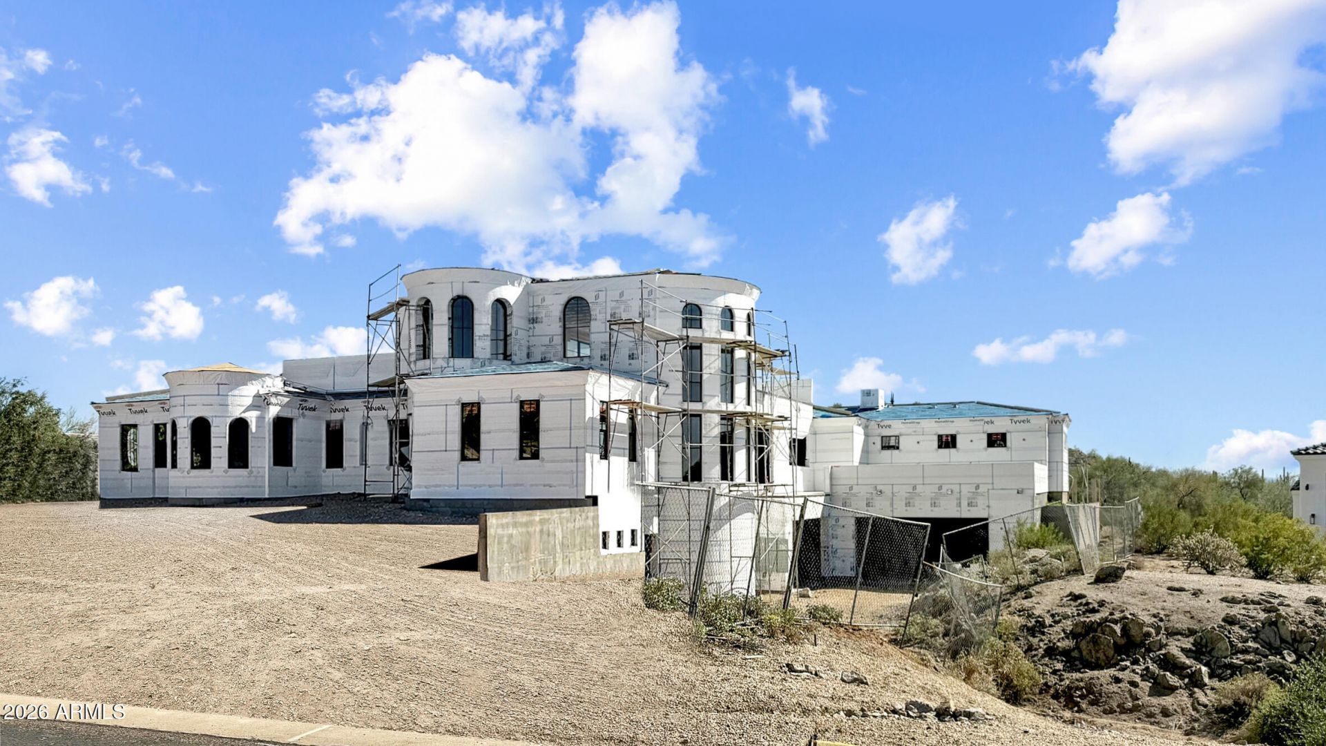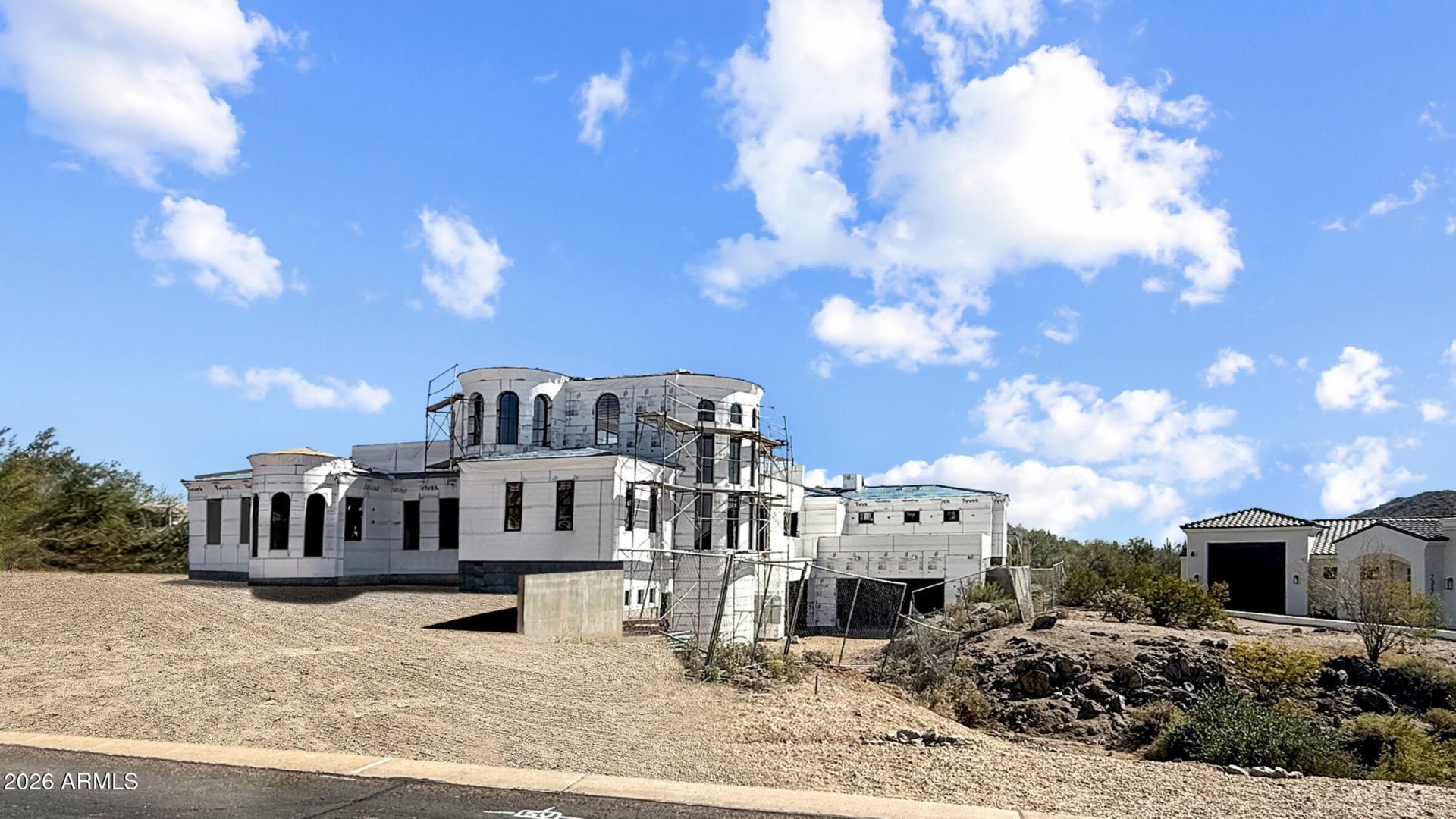 Commanding pristine panoramic views of desert and mountain vistas, including Camelback Mountain, Red Mountain and Usery Pass, this exceptional newly constructed home reimagines Spanish Revival architecture through a modern lens--crafted to meet todays conveniences and desires while honoring the romance of old-world design. Timeless elements such as arched passageways and windows, rich architectural details, and the use of natural materials are paired with a refined, updated aesthetic, while a welcoming front courtyard with breathtaking mountain views, intricate tilework and an outdoor fire feature create a warm first impression. Inside, a light-filled open layout reveals soaring ceilings and seamless indoor-outdoor living, all thoughtfully designed to showcase the homes breathtaking surroundings. The Chefs kitchen is appointed with a 30 Sub-Zero Refrigerator, 30 Sub-Zero Freezer, Wolf wall ovens, beverage refrigerator and a Pitt integrated gas cooktop. Designer-selected white oak cabinetry and an oversized island accented by a visually stunning copper hood element blend performance with thoughtful design. A fully finished butlers pantry offers added counter and storage space perfect for culinary adventures and organization, and a main-level walkout deck just beyond the kitchen is the perfect place to dine al fresco or to add an outdoor kitchen.A curated mix of wood, stone, and distinctive tile flooring adds warmth and texture throughout, while integrated smart home technology and energy-efficient systems deliver seamless, elevated living. The great room and adjacent living area share a dual-sided gas fireplace, offering the best of both worlds- open living spaces and a more private sanctuary for living and entertaining. Glass slider doors connect to the expansive covered patio as it overlooks the lush desert surroundings beyond. Imagine a back yard retreat with a stone-paved patio, desert landscape and dramatic evening lighting leading the way to a heated pool and spa, providing a serene setting to unwind while taking in the surrounding desert and mountain views. The primary suite offers a private retreat with a spa-inspired bath, pass-through shower with floor-to-ceiling tile and expansive walk-in closet. In another wing, guest quarters include a kitchenette, private bath, and separate entrance to the front courtyard--ideal for extended stays.A grand staircase wraps around a private elevator that connects all levels, leading to an upper-level wellness retreat complete with a wet bar and powder bath. Expansive elevated decking extends the living space outdoors, creating an extraordinary vantage point to take in sweeping views and unforgettable Arizona sunsets--perfect for both relaxation and elevated entertaining. At the heart of the home on the main level is an open-air outdoor atrium with another intimate fireplace and a private staircase to the upper and bottom levels The lower level expands the homes versatility with a spacious garage offering 5 parking spots and storage, a media room/wine room which is pre-wired for customized temperature control, and an additional bedroom or secondary office--with a private entrance that creates a true away-from-it-all retreat within the home.Blending old-world charm with modern refinement, this residence delivers an elevated living experience defined by design, comfort, and unforgettable views. The home is ideally located just a few hundred feet from the Las Sendas Golf Course, a top rated-golf course that is recognized as one of the